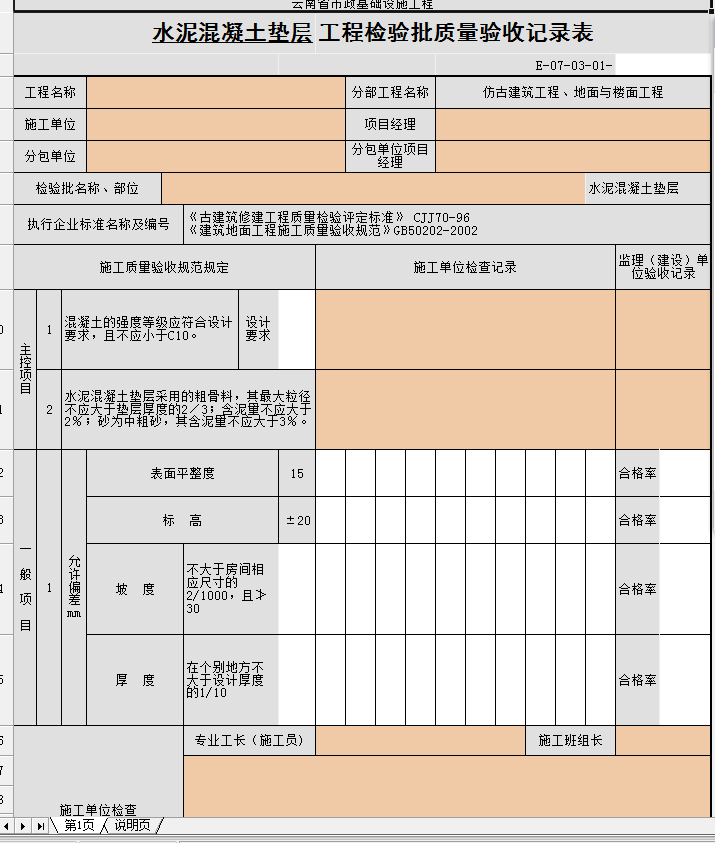 云南市政基礎(chǔ)軟件表格都通用嗎?混凝土墊層的表格是不是用這張?
