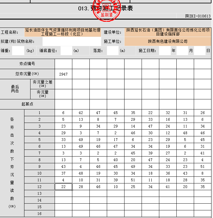 這種施工記錄表要根據(jù)現(xiàn)場(chǎng)實(shí)際夯擊次數(shù)來(lái)填寫(xiě)的,不能填充隨機(jī)數(shù)哦