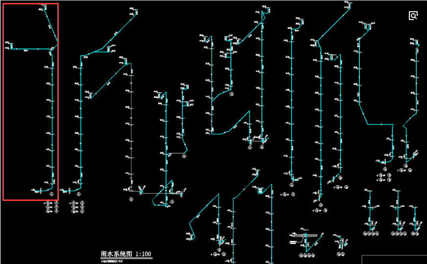 根據(jù)施工圖紙雨水系統(tǒng)圖,一個(gè)系統(tǒng)做一個(gè)檢驗(yàn)批。如圖: