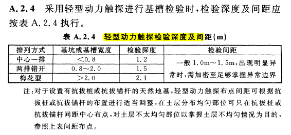 A.1. 2 驗槽時,現(xiàn)場應(yīng)具備巖土工程勘察報告、輕型動力觸探記錄(可不進行輕型動力觸探的情況除外入地基基礎(chǔ)設(shè)計文件、地基處理或深基礎(chǔ)施工質(zhì)量檢測報告等。