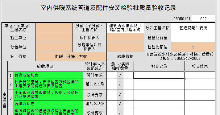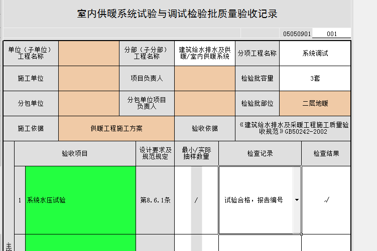 檢驗(yàn)批容量是根據(jù)已經(jīng)監(jiān)理審批的檢驗(yàn)批劃分方案來(lái)確定的,如按系統(tǒng)就按系統(tǒng)圖計(jì)算管道的長(zhǎng)度,如果是按樓層,就按各層平面圖計(jì)算各層的管道長(zhǎng)度,最小抽樣數(shù)量無(wú)具體要求時(shí)就按全數(shù)檢查算,即最小抽樣數(shù)量即為檢驗(yàn)批容量。