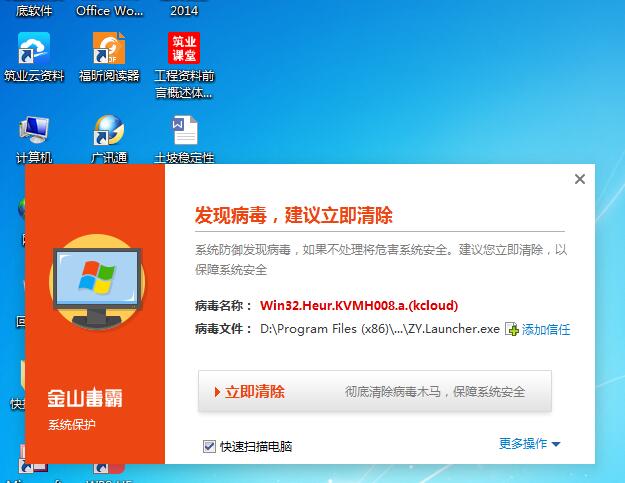 打開云資料軟件,被金山毒霸攔截