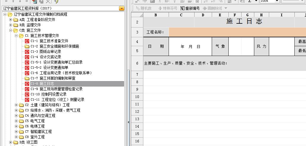 遼寧省市政軟件沒有施工日志表格
