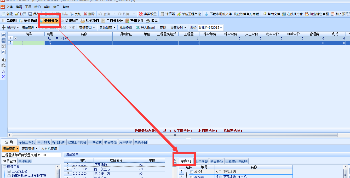 創(chuàng)建工程的時候選擇清單計價,進(jìn)入后在分部分項界面,靠下方就有。