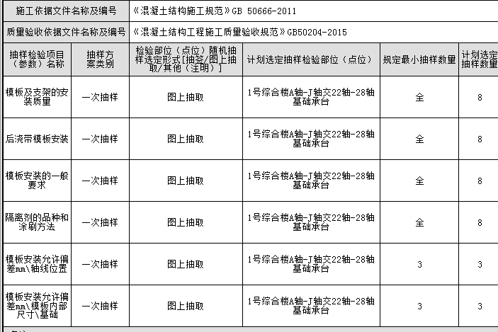 這個方案就是在開工前根據(jù)有關規(guī)范要求,將應取樣送檢的原材料、構配件及試件作一個統(tǒng)一的檢驗計劃,便于及時抽樣送檢,以免遺漏。不是每張檢驗批都做,開工前做好就行。