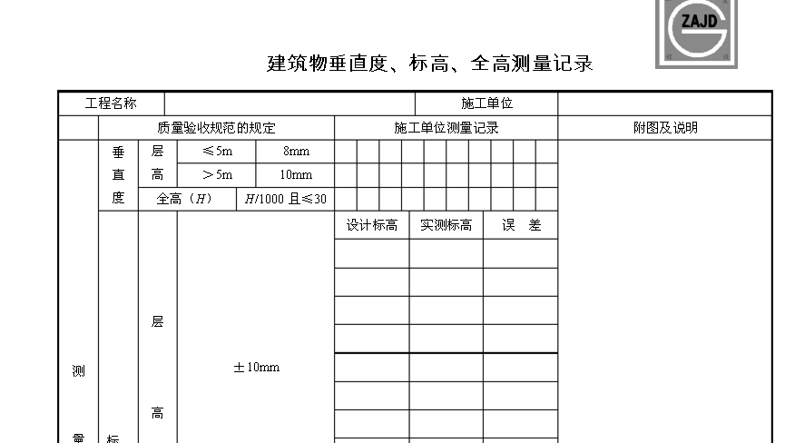 SG-014表格建筑物垂直度、標高、全高測量記錄是每層都要寫,還是一棟樓一張?