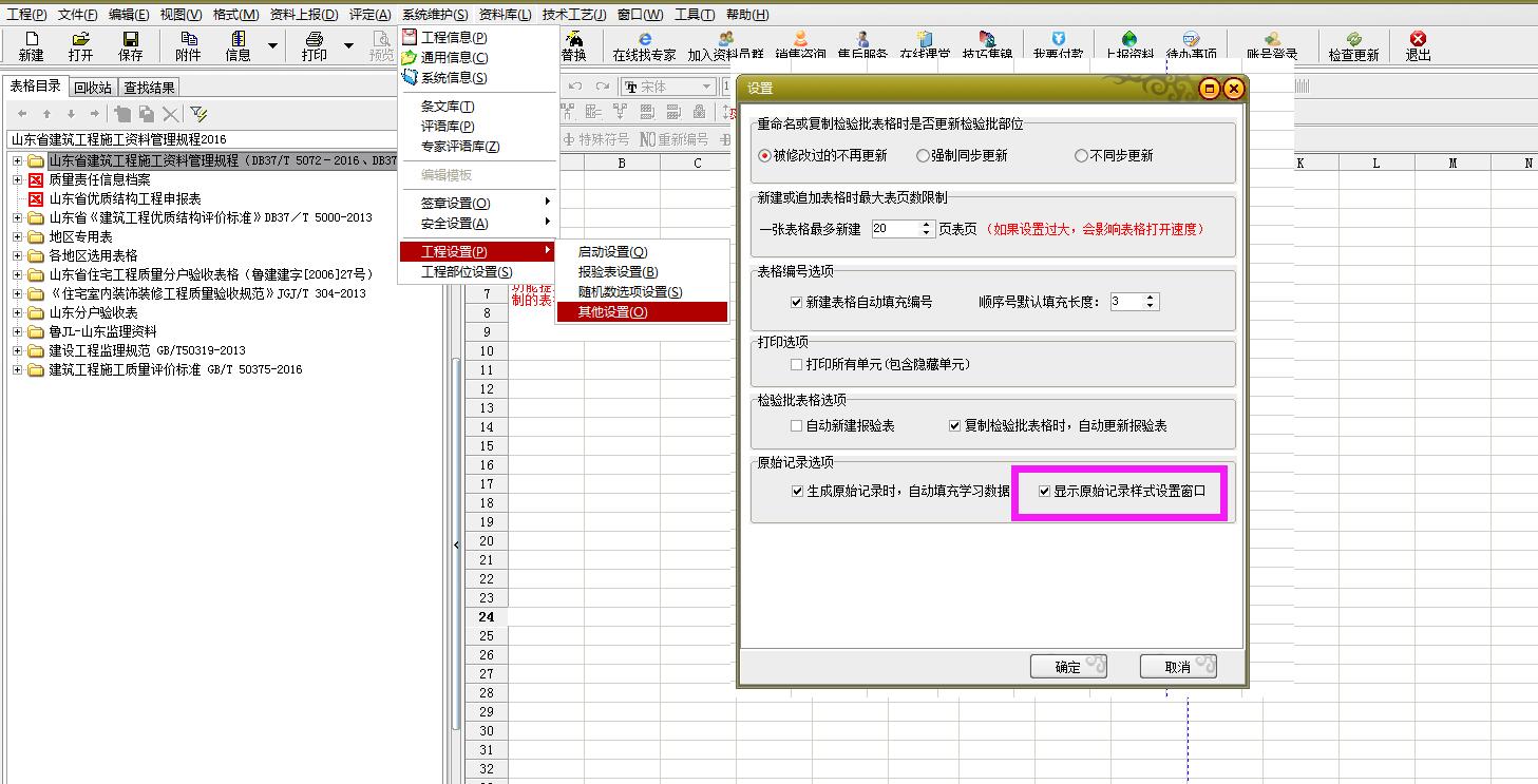系統(tǒng)維護(hù)--工程設(shè)置---其他設(shè)置--勾選上“顯示原始記錄樣式設(shè)置窗口”即可!如下圖: