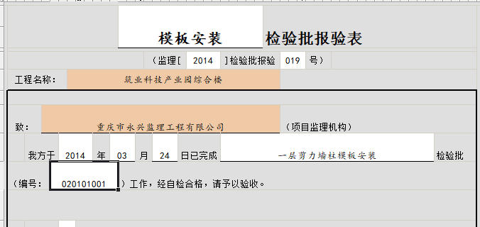 填寫(xiě)對(duì)應(yīng)部位檢驗(yàn)右上角的檢驗(yàn)批編號(hào)即可