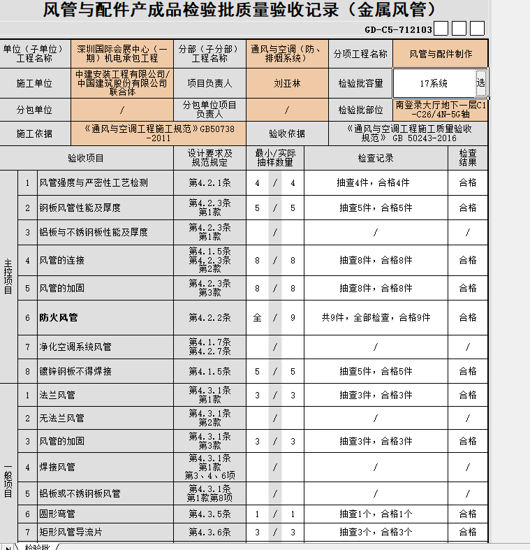 建議打開填表說(shuō)明對(duì)照填表說(shuō)面看,通風(fēng)與空調(diào)有專門的抽樣方案數(shù)值是通過(guò)抽樣方案的要求生成的