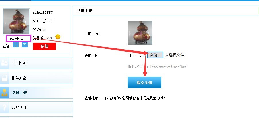 在個(gè)人中心,可以直接修改頭像喲