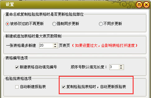 把里面的“復(fù)制檢驗(yàn)批時,自動更新報(bào)驗(yàn)表”打上勾,再操作就可以了!