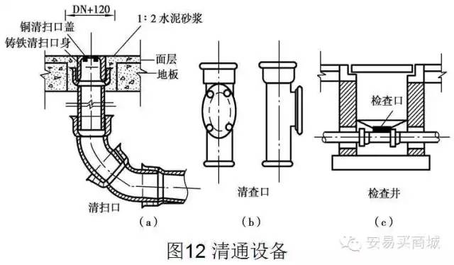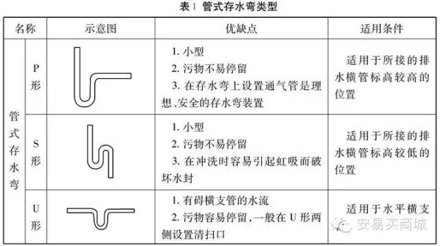 大便器、地漏等大口徑排出口的衛(wèi)生器具,采用P或S形存水彎(材質(zhì)與其管材材質(zhì)相同)。洗臉盆、浴盆等小口徑排出口的衛(wèi)生器具,采用玻璃鋼S,P形存水彎。90度彎頭以兩個(gè)45度彎頭代替。三、四通采用斜式。建筑物高度在6層之內(nèi)且衛(wèi)生器具(大便器)較少時(shí),可采用2個(gè)45度彎頭代替出戶大彎。