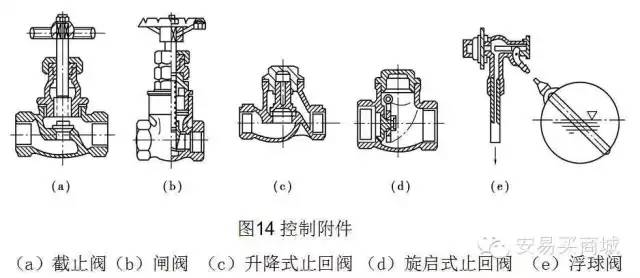 通常采用閘閥或截止閥,其中DN50以上常用法蘭式閘閥;DN50以內(nèi)常用絲扣式截止閥。