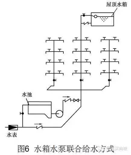 (4)水池—水泵—水箱聯(lián)合給水方式
