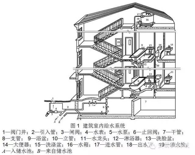①引入管:自室外給水管將水引入室內(nèi)的管段,也稱進(jìn)戶管。