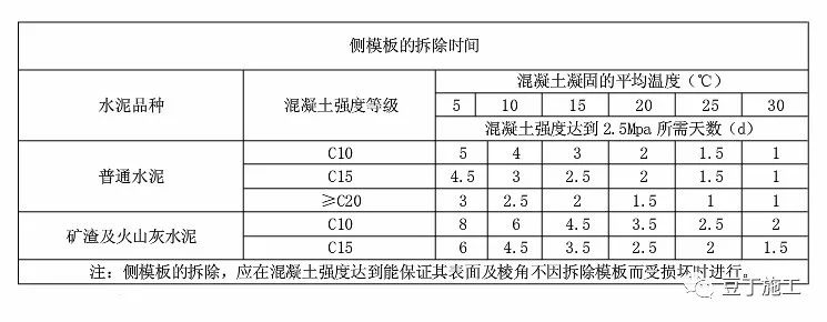 (6)模板拆除時,混凝土的強(qiáng)度必須達(dá)到一定的要求,如混凝土沒達(dá)到規(guī)定的強(qiáng)度要提前拆模時,必須經(jīng)過計算(多留混凝土試塊,拆模前混凝土試塊經(jīng)試壓)確認(rèn)其強(qiáng)度能夠拆模,才能拆除。