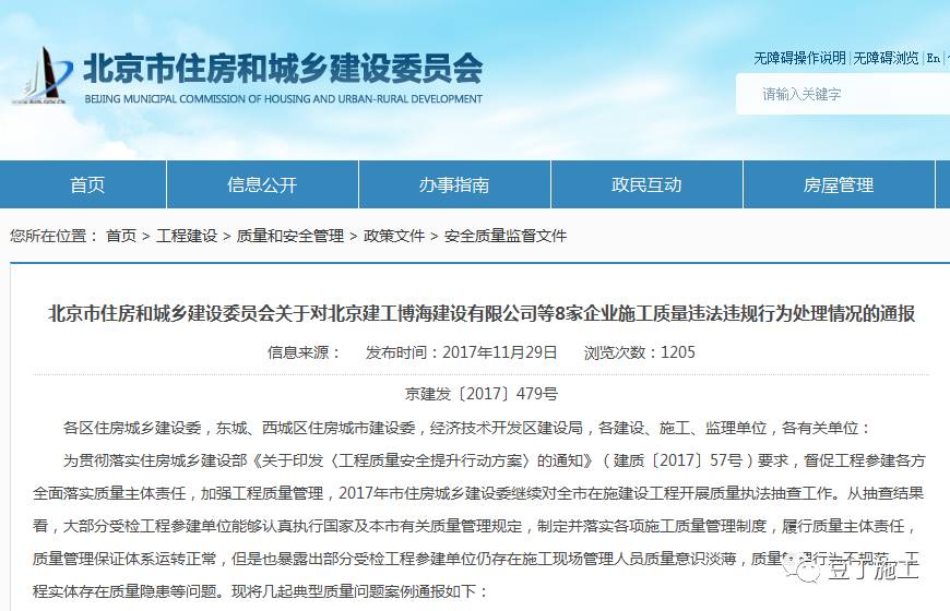 針對上述違法違規(guī)行為,北京市住建委在進(jìn)行行政處罰的同時,依據(jù)本市企業(yè)資質(zhì)和人員資格動態(tài)監(jiān)管的規(guī)定,對相應(yīng)責(zé)任單位和責(zé)任人進(jìn)行了記分處理。目前上述施工質(zhì)量違規(guī)行為均已整改完畢,且經(jīng)復(fù)檢達(dá)到相關(guān)技術(shù)規(guī)范要求。