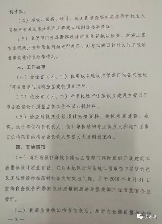 近日,住建部辦公廳發(fā)布通知,決定于2018年7月下旬起開(kāi)展建筑工程勘察設(shè)計(jì)質(zhì)量監(jiān)督執(zhí)法檢查,主要落實(shí)建設(shè)、勘察、設(shè)計(jì)單位項(xiàng)目負(fù)責(zé)人質(zhì)量終身責(zé)任制情況等內(nèi)容。