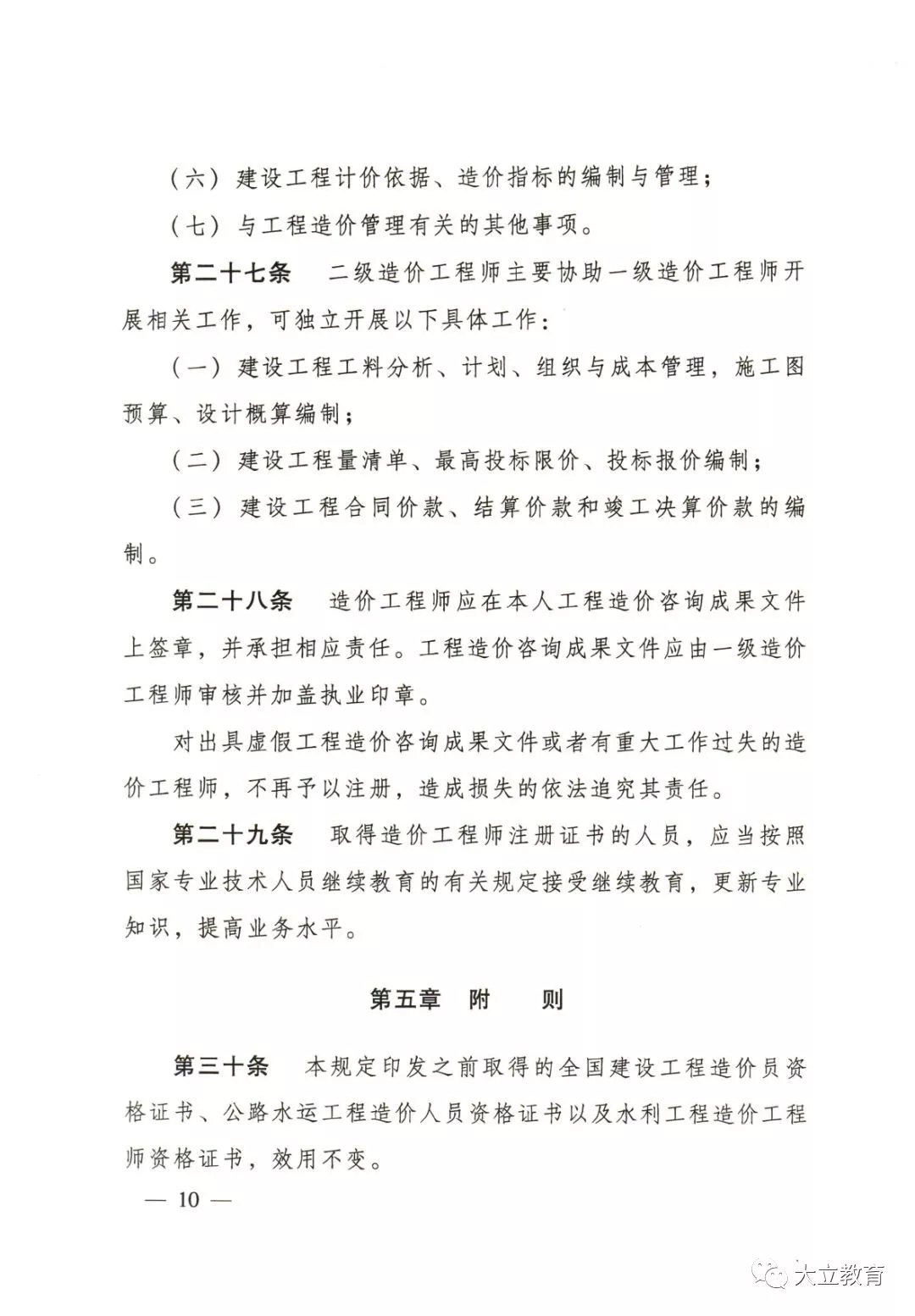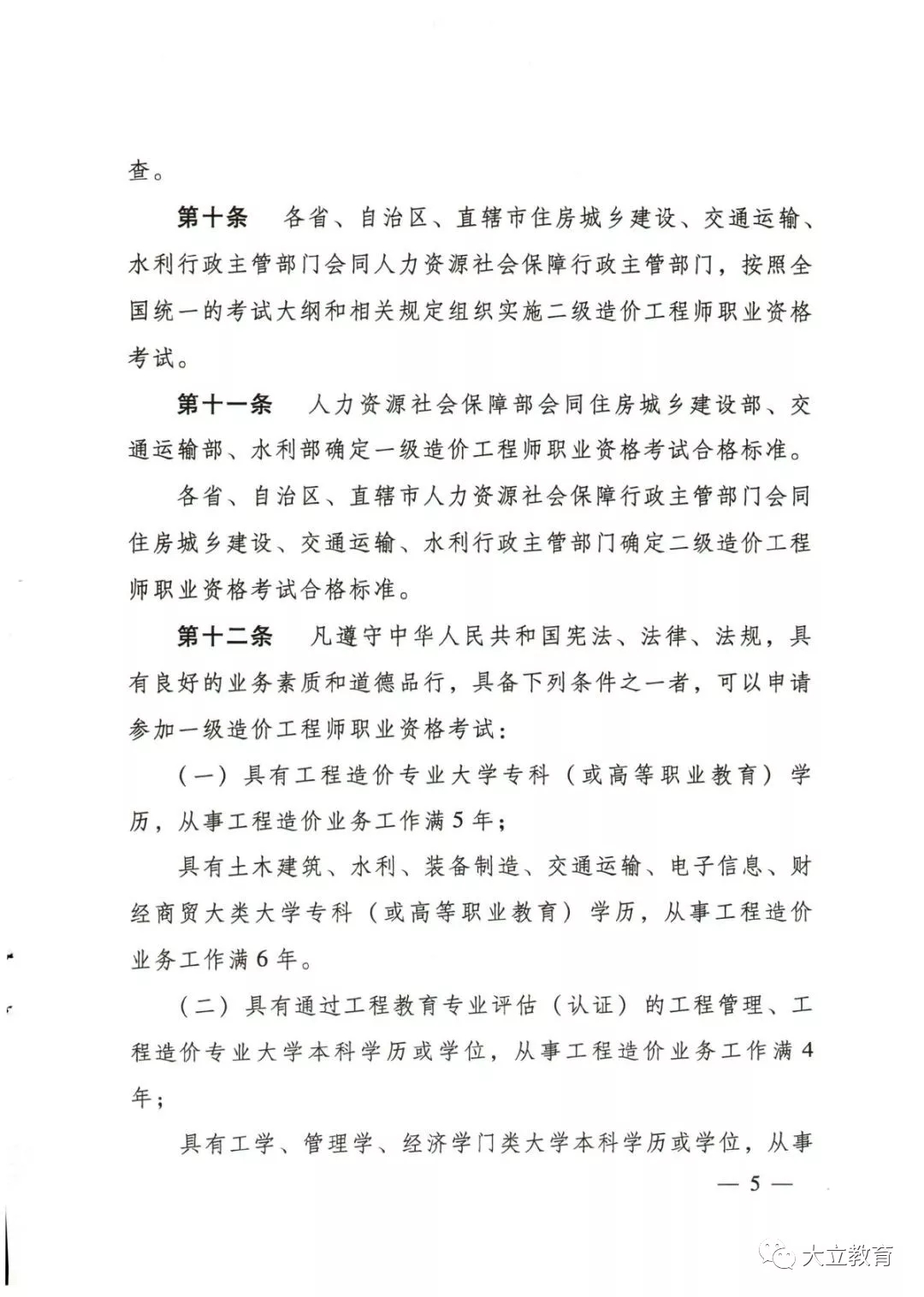 (五)具有其他專(zhuān)業(yè)相應(yīng)學(xué)歷或者學(xué)位的人員,從事工程造價(jià)業(yè)務(wù)工作年限相應(yīng)增加1年。