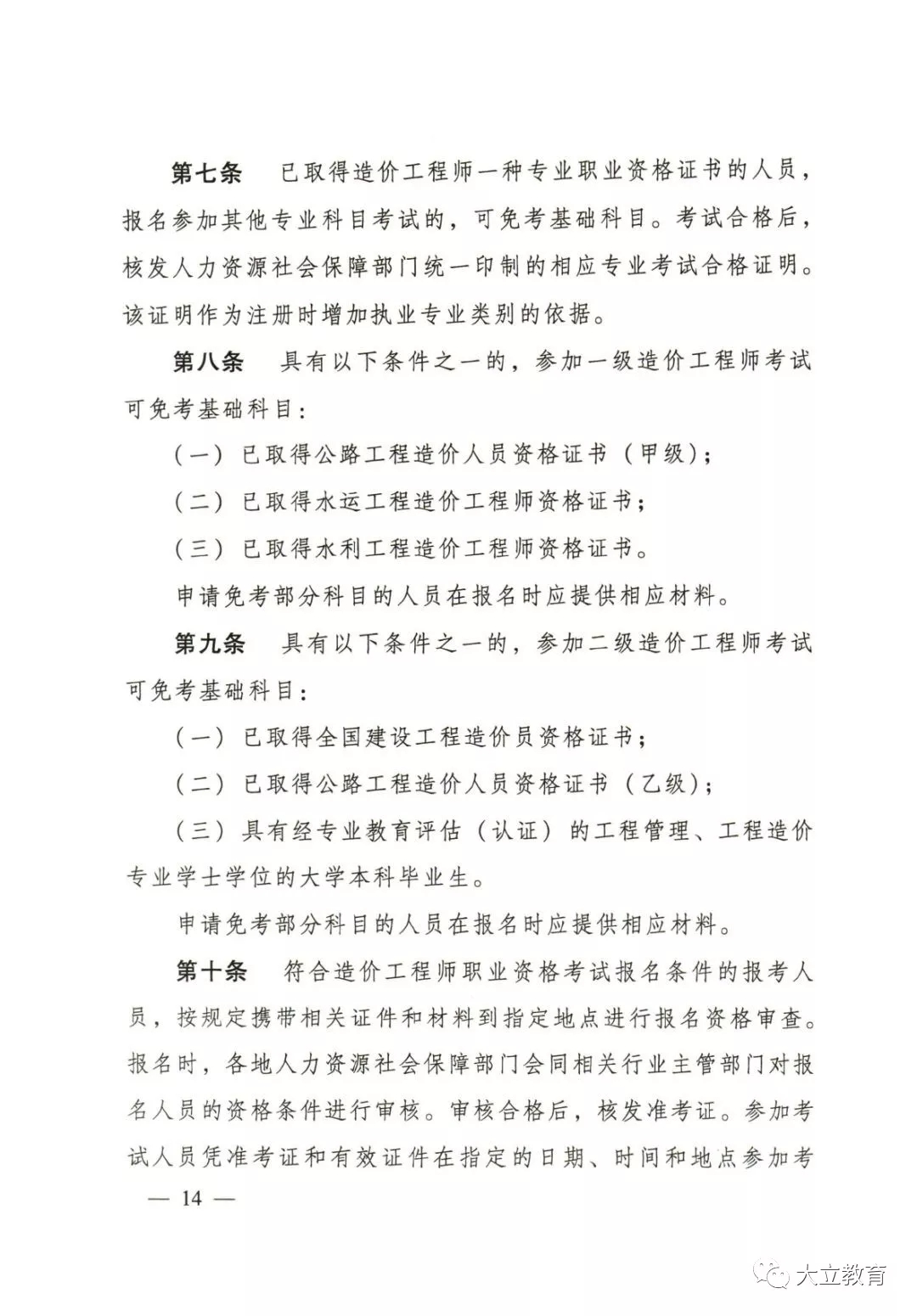 (一)具有工程造價(jià)專(zhuān)業(yè)大學(xué)專(zhuān)科(或高等職業(yè)教育)學(xué)歷,從事工程造價(jià)業(yè)務(wù)工作滿2年;