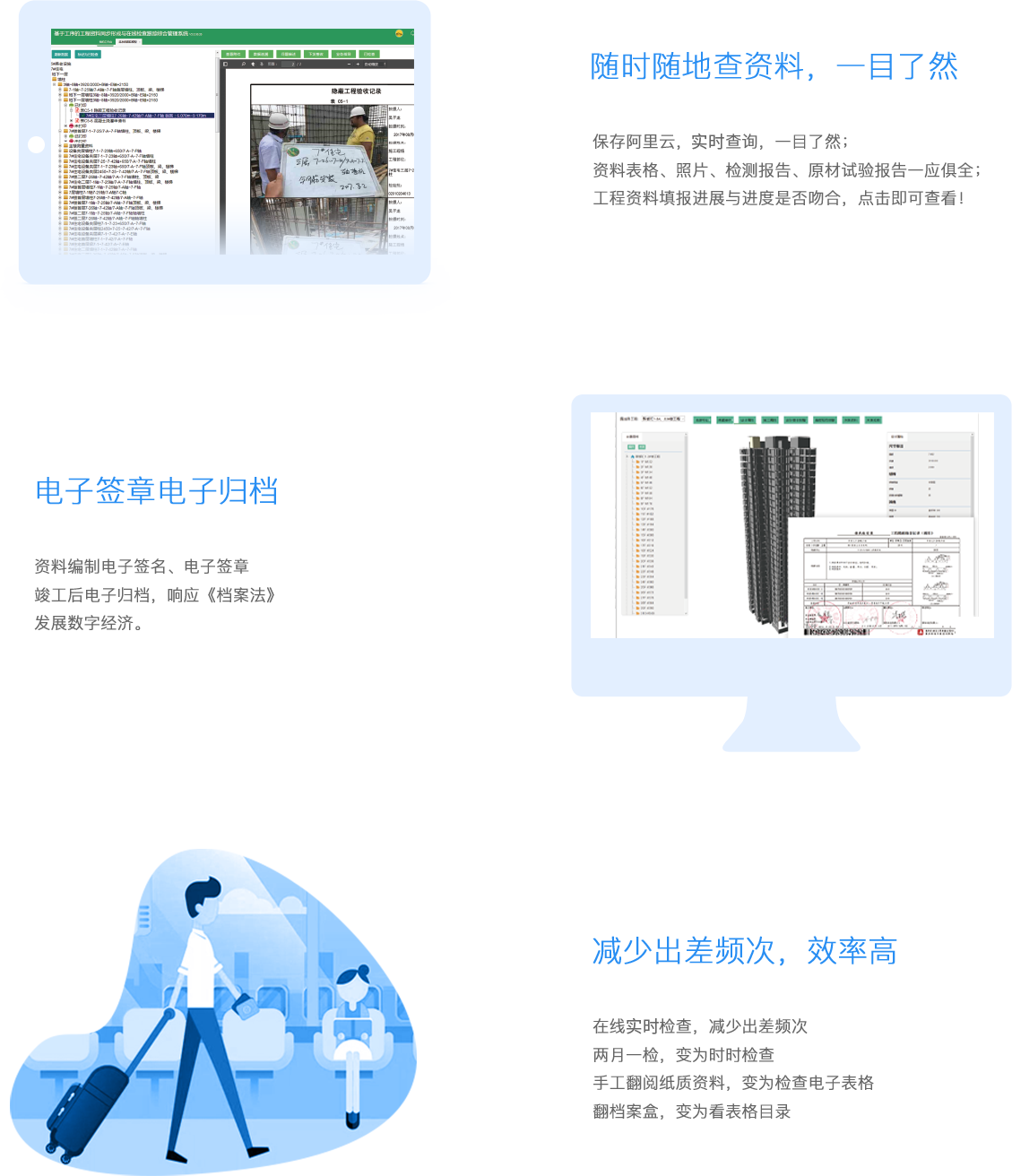 幫助施工企業(yè)完善施工質量的過程管理,實現資料可視化管理,完成電子版資料存檔。
